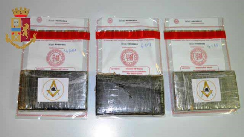 Il contenuto, sottoposto al narcotest presso i laboratori della Polizia Scientifica, si è rivelato essere 3,300 kg circa di cocaina.