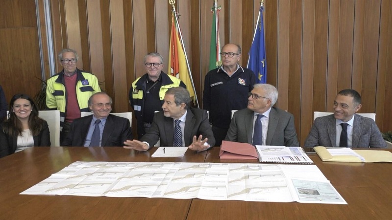 Può finalmente partire l’intervento per la rimozione della frana di Letojanni sull’autostrada A18 Messina-Catania e la riapertura della carreggiata interrotta da quattro anni per la caduta di detriti. Questa mattina, al PalaRegione di Catania, il governatore Nello Musumeci ha ufficialmente consegnato alla ditta aggiudicataria i lavori per ripristinare la piena sicurezza sull’importante arteria autostradale. Erano presenti il vertice del Cas, il Consorzio delle autostrade siciliane, con il direttore Salvatore Minaldi e l’architetto Alberto Vecchio della Protezione civile regionale.